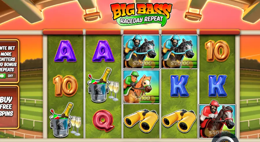 Compared with the original Big Bass Bonanza from Pragmatic Play, Big Bass Raceday Repeat pushes the adventure beyond calm waters into the high stakes drama of the racetrack. While the original focuses on peaceful fishing reels and steady collection mechanics, Raceday Repeat feels faster and more unpredictable, like a wild sprint toward treasure where every spin echoes with the thunder of hooves and the thrill of chasing the next massive win.