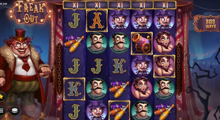 FREAK OUT unfolds on a 5×5 haunted circus grid where every spin feels like walking a tightrope above the unknown. Symbols may split and shift mid-spin, triggering cascades and chain reactions. Land three Scatters to summon Free Spins, and if you dare, use the Bonus Bet to amplify symbol splitting. With ultra-high max win potential, dark visuals, and pulse-pounding soundscapes, each round feels like entering a twilight realm where luck and fear collide.