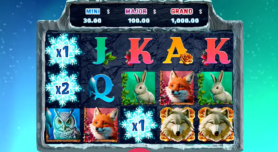 This 3×5 journey runs on 25 paylines, where wins feel like tracks in fresh snow. Snowflakes can land as direct prizes, while Free Spins transforms the heart of the machine by merging the three central reels into one towering mega window. When the Link Bonus awakens, symbols lock in and respins prowl for jackpots, with Buy Bonus available when you want to skip straight to the ritual.