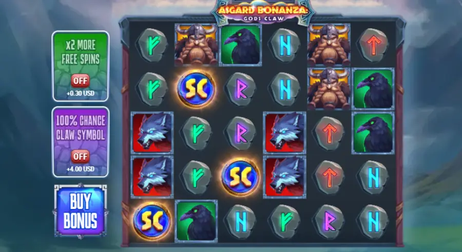 Asgard Bonanza: Gods Claw uses a 6-by-5 layout with Pay-Anywhere mechanics so matching symbols anywhere triggers wins. Cascading reels (avalanches) remove winning symbols and drop new ones, enabling chains. Free Spins are triggered via scatter symbols, with extra Free Spins, random multipliers, and a Bonus Bet / Buy-Feature option to access bonus rounds early.