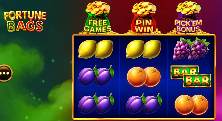 Fortune Bags plays on a compact 3×3 grid with 5 paylines. Collect scatter and wild icons to trigger free spins, then unlock Pick Game or Pin Win bonuses. Pile Collector fills bags with multipliers and wilds, fueling suspense as treasure accumulates.