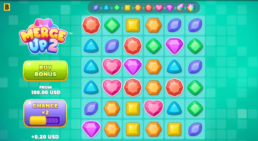 | FEATURES | Merge Up; Cell Multipliers; Bombs; Free Spins; Buy Bonus; Chance x2; Scatters |