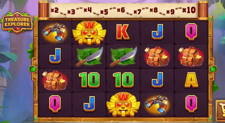 Treasure Explorer plays on 5 reels and 4 rows with 25 fixed paylines. Wins trigger refilling cascades, and each separate win nudges a progressive multiplier map upward from x2 toward x10 in the base game. Land Scatters to enter Free Spins, where the multiplier can climb even higher and milestone rewards can drop Wild Spots and extra spins.