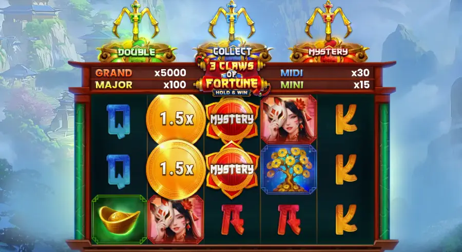 - Mystery Claw morphs into Mini, Midi, Major, or Grand jackpot.
