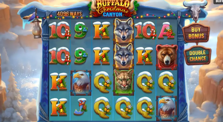 Buffalo Gold Canyon is the sun baked classic, all dust, sandstone, and straight western grit. Buffalo Christmas Canyon keeps the same 4096 way backbone, but swaps in winter mood, festive sound, and an even more relentless Free Spins chase where extra spins can stack hard and the Wild feels like a snowstorm sweeping the whole board.