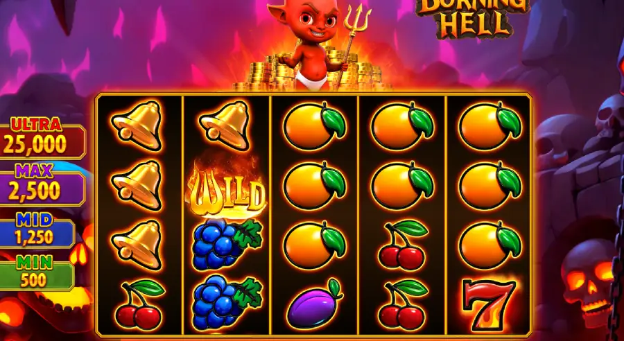 | Burning Hell by Endorphina drags crypto players into a molten fruit underworld ruled by a grinning demon. On a 5×4 grid with 25 fixed paylines, expanding Wilds ignite reel wins, while Scatters unlock Free Games. Chase Fireballs in Luck of the Devil Hold and Win, hunting jackpots and x15 heat with 96.01% RTP. |